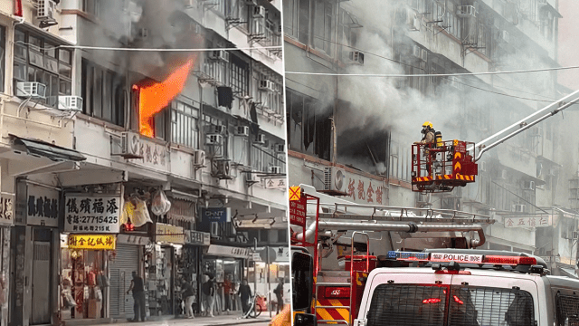 油麻地新填地街紙紮舖貨倉起火 火舌竄出窗濃煙罩路