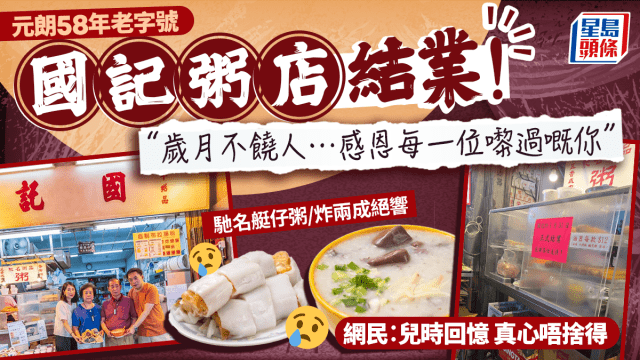 元朗58年老字號國記粥店結業!老闆感嘆「歲月不饒人」 馳名艇仔粥/炸兩成絕響 網民︰真心唔捨得