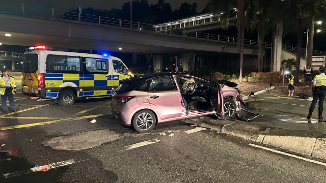葵涌私家車失控猛撼燈柱 3人受傷送院