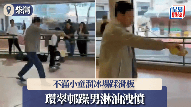 柴灣環翠邨躁男不滿小童踩滑板 淋油落溜冰場報復|有片