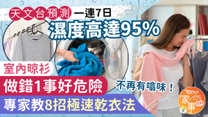 回南天潮濕|天文台料一連7日濕度達95% 室內晾衫做錯1事好危險 8招極速乾衣去噏味
