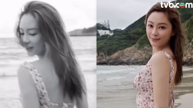葉蒨文碎花吊帶裙露美背 海邊玩水大晒男友視角