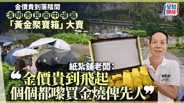 清明節|市民大雨中掃墓 金價貴到落陰間?紙紮舖:「黃金聚寶箱」大賣 人人「買金」燒俾先人
