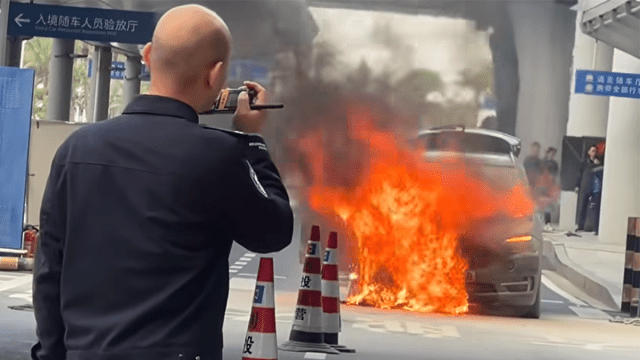 有片|港珠澳大橋珠海口岸掛港牌私家車起火 火光熊熊黑煙沖天