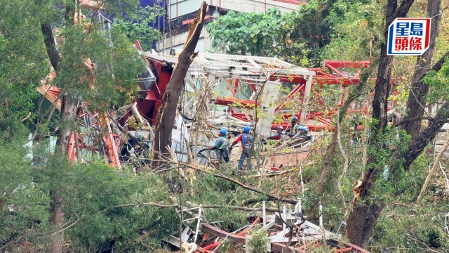 葵涌冧天秤│工人切割天秤殘骸準備運走 部分大窩口道來回全線封 巴士改道