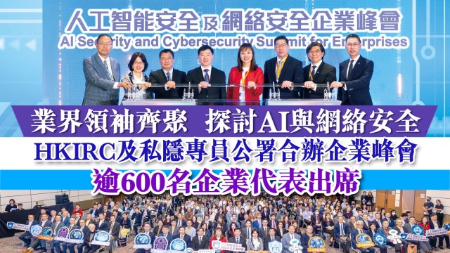業界領袖齊聚 探討AI與網絡安全 HKIRC及私隱專員公署合辦企業峰會 逾600名企業代表出席