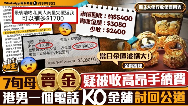 星島申訴王|7旬母賣金疑被收4成手續費 港男理論討回公道 涉事金舖:金價波幅大