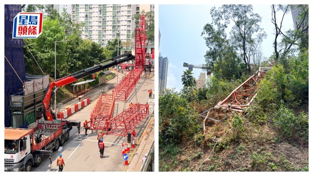 葵涌冧天秤│地盤組裝新天秤移走殘骸 對開大窩口道全線封 部分巴士小巴線續改道