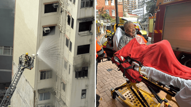 西營盤美興樓火警 一老翁不適送院 現場交通受阻部份巴士路線需改道