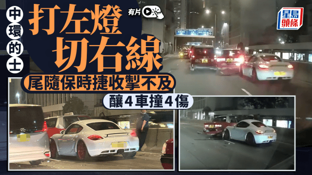 中環的士疑「打左燈切右線」 保時捷收掣不及釀4車撞 4傷送院|有片
