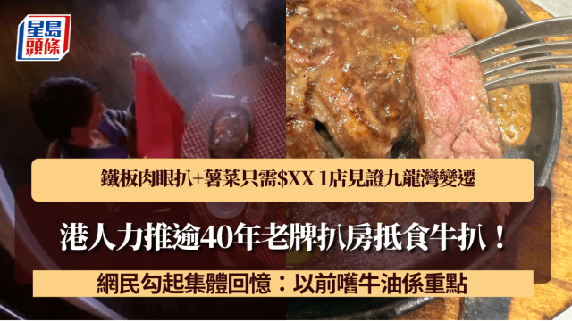 港人力推逾40年老牌扒房抵食牛扒!鐵板肉眼扒+薯菜只需$XX 1店見證九龍灣變遷 網民勾集體回憶:以前嚿牛油係重點