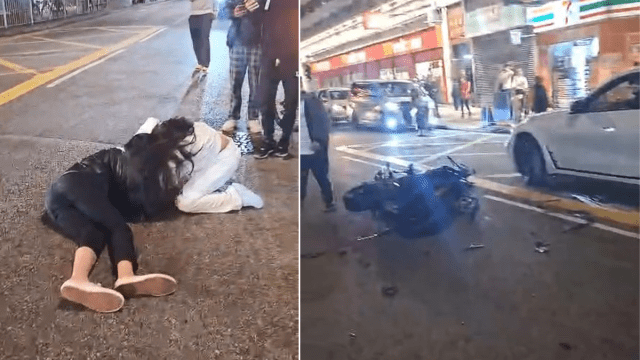 有片|元朗鐵騎士捱撞倒地抽搐 長髮女大叫:Anyone call the police?