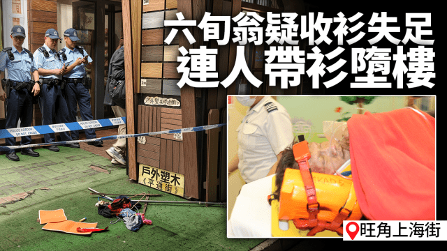 旺角上海街六旬翁爬窗收衫失足 連人帶衫墮樓送院