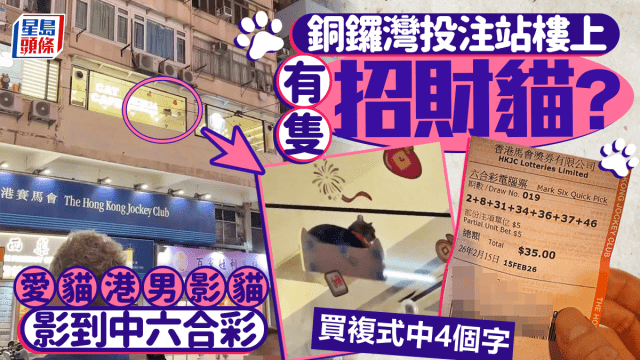銅鑼灣投注站樓上有隻招財貓? 愛貓港男影貓影到中六合彩 買複式中4個字|Juicy叮