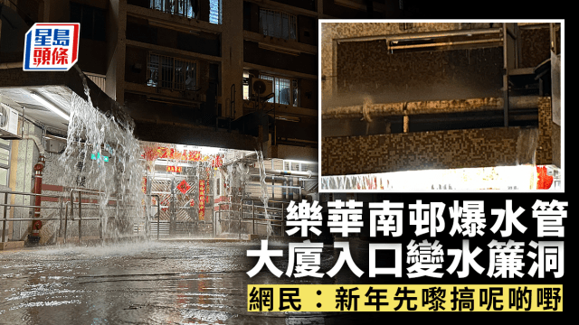 有片|樂華南邨爆水管 大廈入口變「水簾洞」 逾200戶無食水用