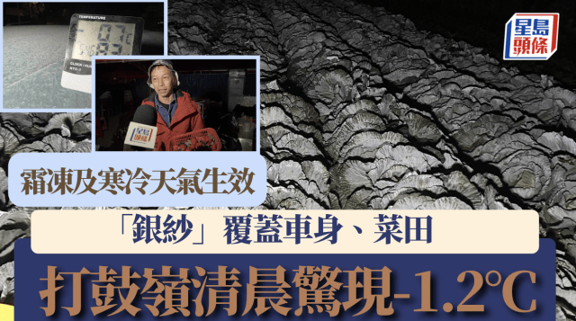 打鼓嶺清晨驚現-1.2°C 「銀紗」覆蓋車身、菜田
