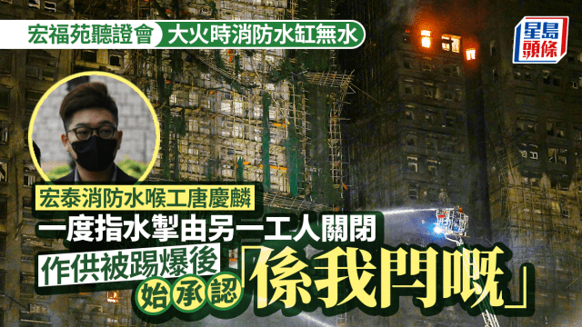 宏福苑聽證會︱宏泰消防水喉工聲稱水缸水掣由另一工人關閉 被大律師踢爆即改口:係我閂嘅