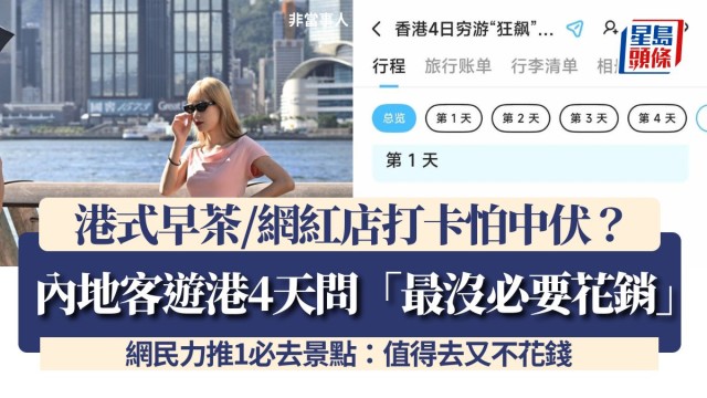 內地客遊港4天問「最沒必要花銷」 港式早茶/網紅店打卡怕中伏? 網民力推1必去景點:值得去又不花錢