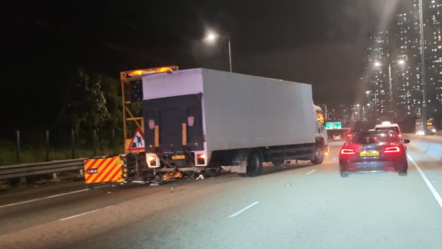 北大嶼山公路中型貨車猛撼工程車 幸無人受傷