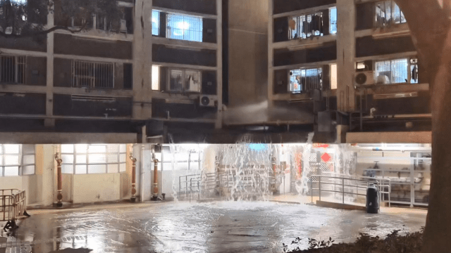 有片|樂華南邨爆水管 大廈入口變「水簾洞」 網民:新年先嚟搞呢啲嘢