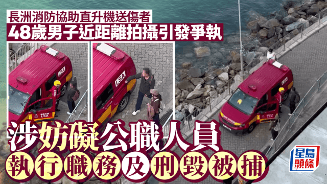 長洲消防協助直升機送傷者遭近影 48歲男涉妨礙公職人員執行職務及刑毀被捕
