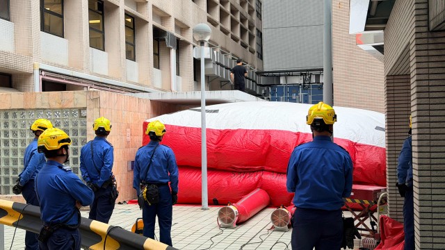 伊利沙伯醫院男子簷蓬危站 消防開氣墊戒備