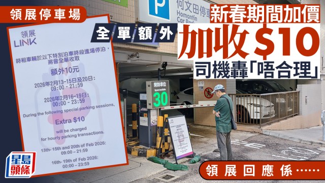 領展停車場新年期間全單額外加收10元 司機:覺得唔合理