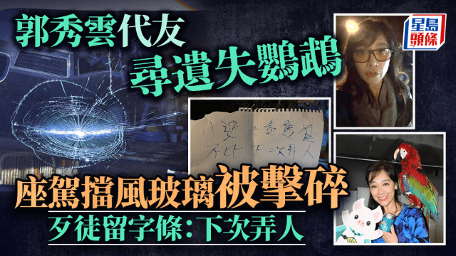 郭秀雲元朗代友尋遺失鸚鵡 座駕擋風玻璃被擊碎 兇徒留字條:下次弄人